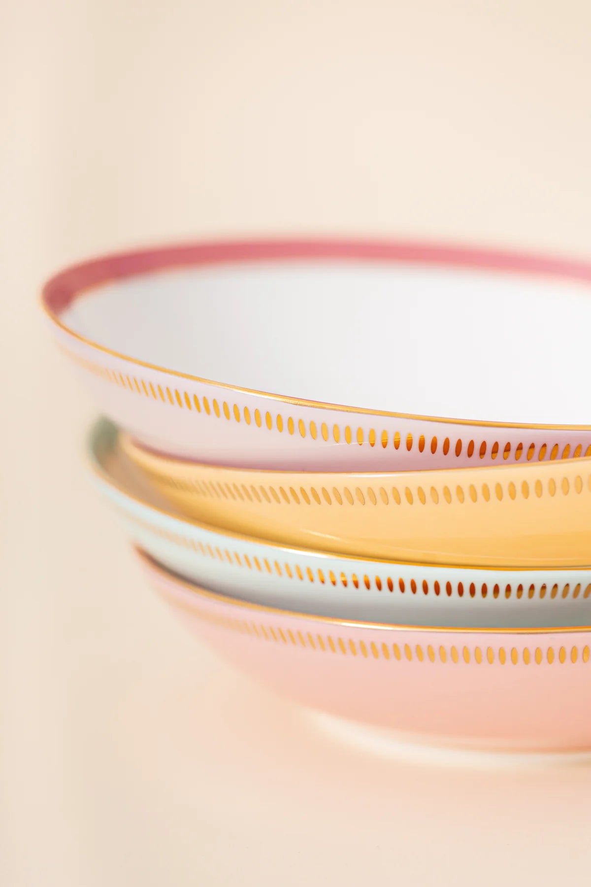 This quirky set is the embodiment of the Yvonne Ellen style: animal life juxtaposed in original, colourful compositions. The pastel pasta bowls are adorned with four of my iconic animals decorated with cutesy accessories. The gold details make this set perfect for adding a funky feel to your next dinner party!