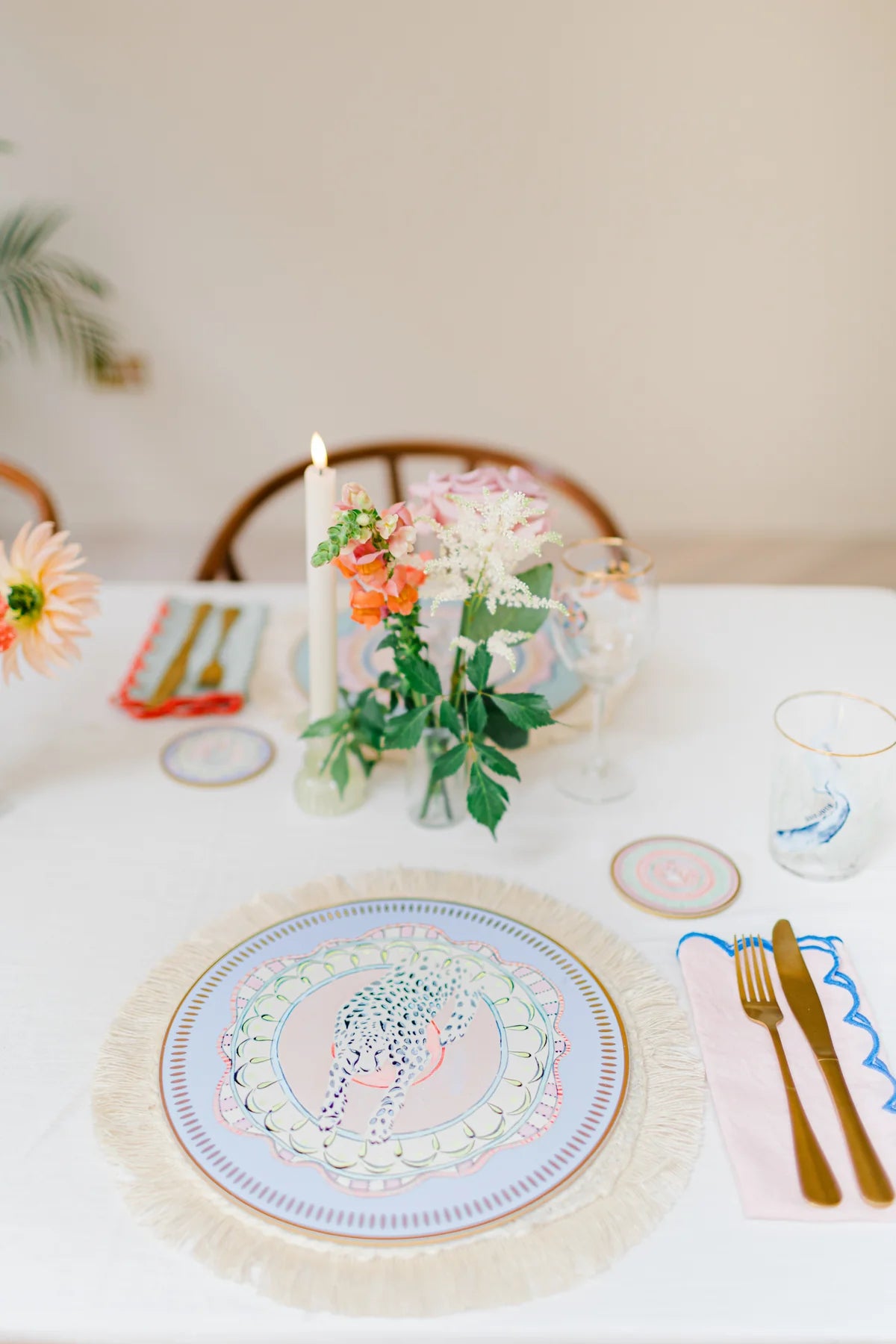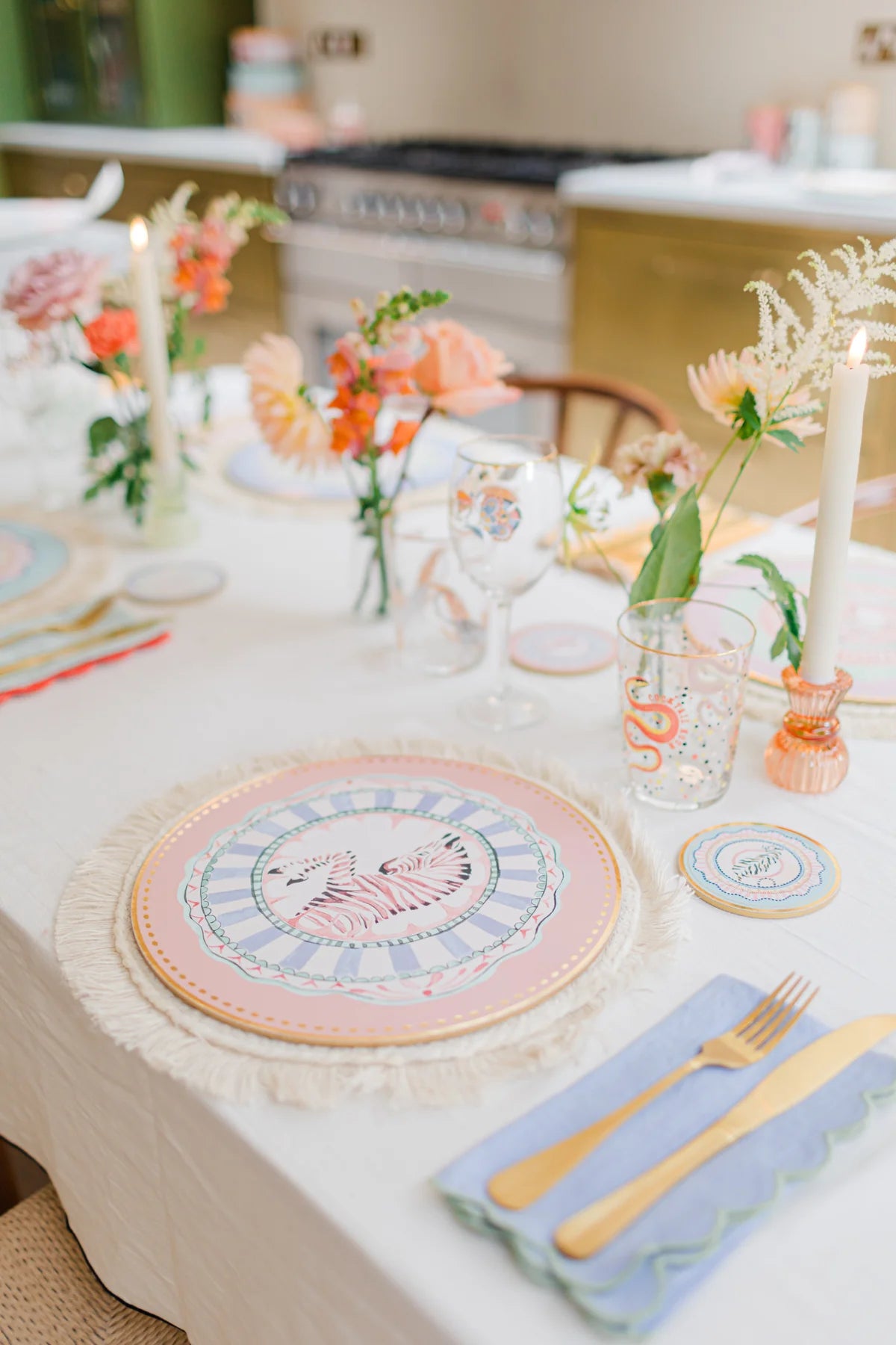 Meet the brand-new cork back placemats - they're pastel perfection! These placemats feature four adorable pastel designs, each hand-illustrated with love. And the best part? They're all decked out in a touch of golden bling. So, whether it's your morning brekky or a family dinner, these placemats promise to make every meal a little more special.