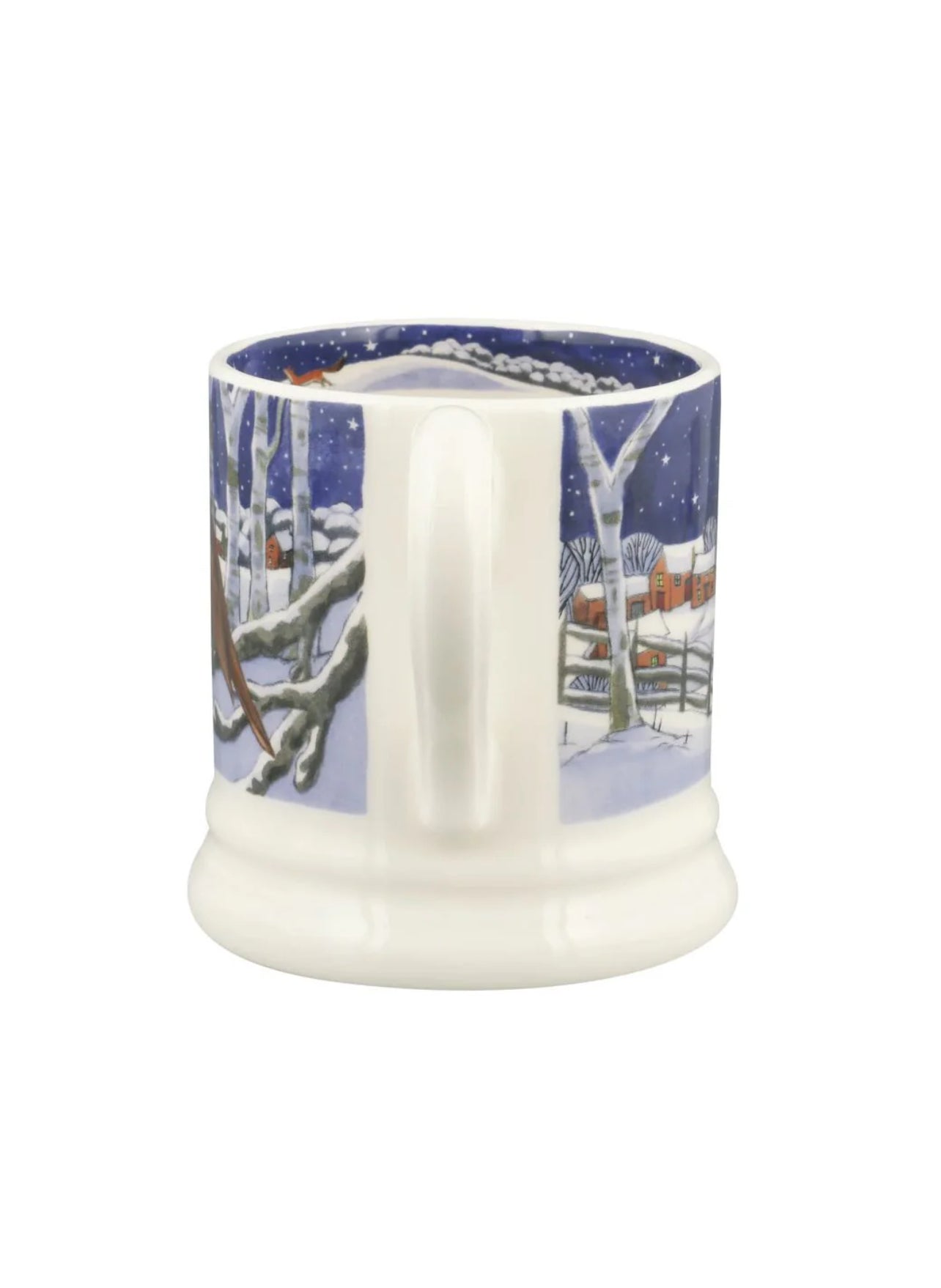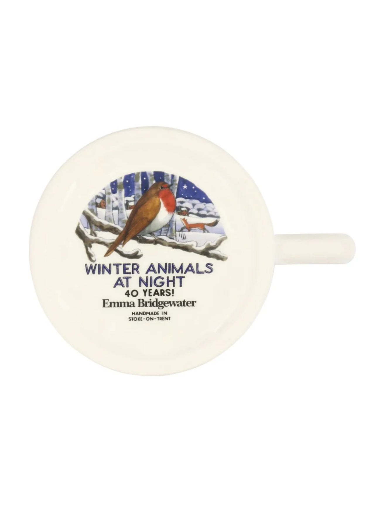 Hares, owls and deer are now joined in their moonlit adventure on a winter’s night in the snow-clad countryside by a friendly robin on his very own Midnight Robin 1/2 Pint Mug.