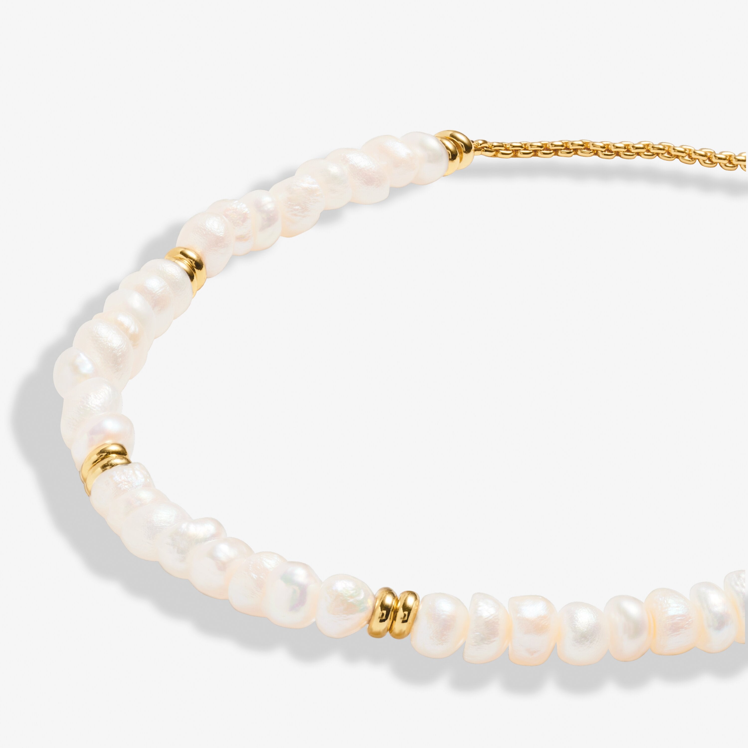 The Manifestones collection is here to help you and your loved ones connect with your heart's desires and inspire positive change. Embellished with a row of semi-precious gemstones in pearly white, the Manifestones Pearl bracelet in gold-plating encourages integrity, beauty, and intuition. This fully adjustable slider-style bracelet sits pretty on a mantra-stamped card, ready to add interest to every wrist stack.