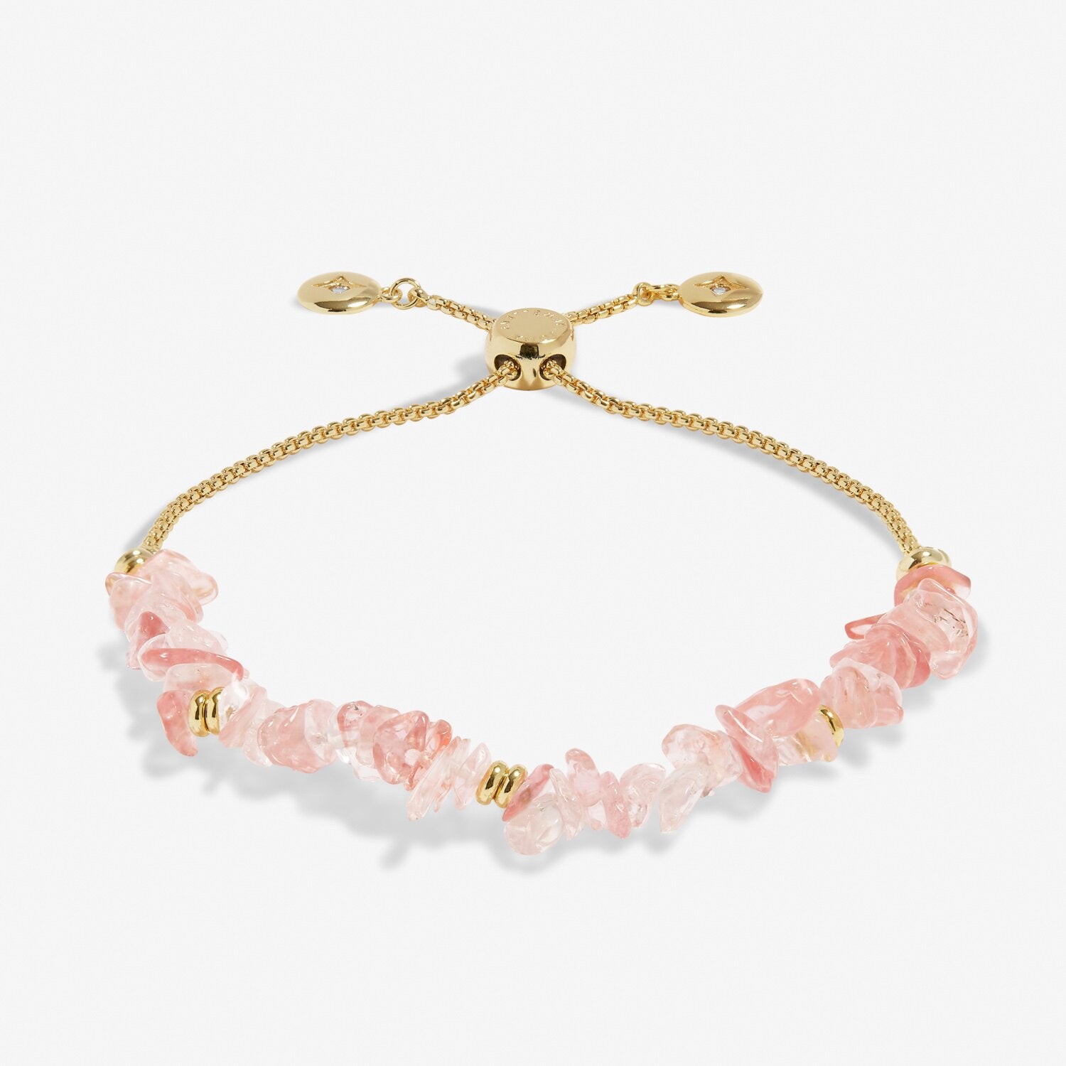 The Manifestones collection is here to help you and your loved ones connect with your heart's desires and inspire positive change. Embellished with a row of semi-precious gemstones in vibrant pink, the Manifestones Watermelon Stone bracelet in gold-plating encourages creativity, generosity, and ambition. This fully adjustable slider-style bracelet sits pretty on a mantra-stamped card, ready to add interest to every wrist stack.