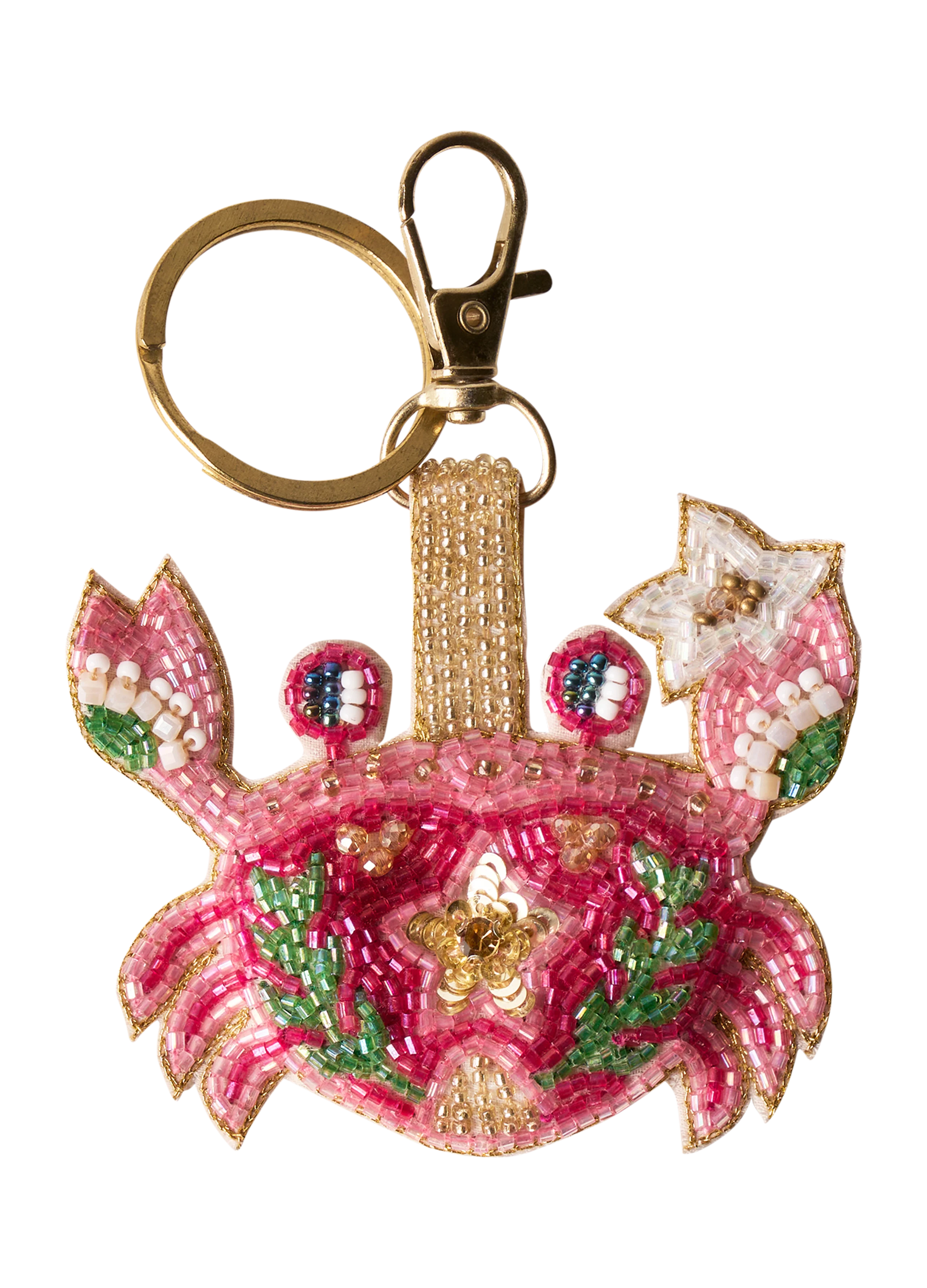 Whimsical and wonderful! This seafaring crab keyring features beautifully delicate beading with a delightfully vibrant colourway. This can be used as both a keyring and a bag charm which makes it perfect for novelty gifting or adding luxury to your everyday!