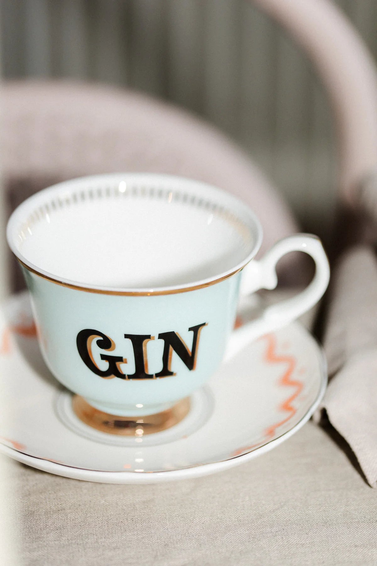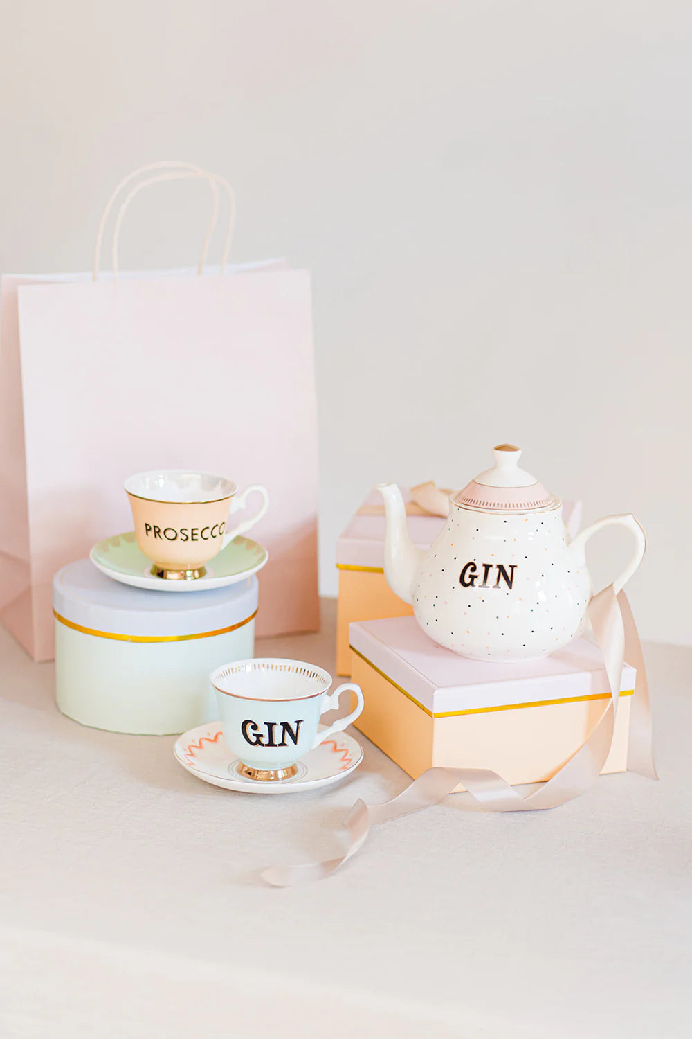 Ideal for tea parties, this vintage-style Pastel Gin Tea Cup and Saucer set is adorned with gilt gold detailing and Yvonne Ellen's iconic vintage designs. It's perfect for enjoying your favourite brew or for drinking a gin cocktail with a touch of finesse, giving traditional tea time a twist with our boozy collection.