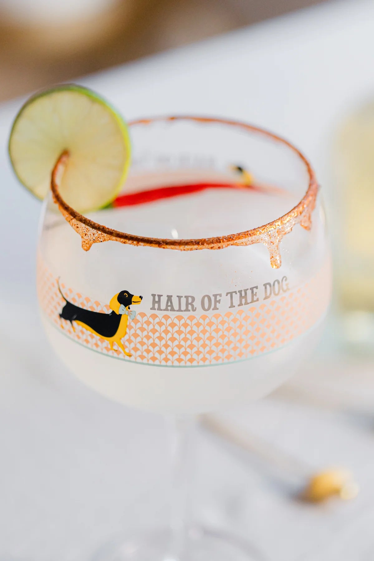 How amazing is this sausage doggie gin glass? Yvonnes’s iconic slogan decorates this gin glass with gold lettering and a cheeky little sausage doggie. Finished with a gold gilded rim, this gin glass is a must have!