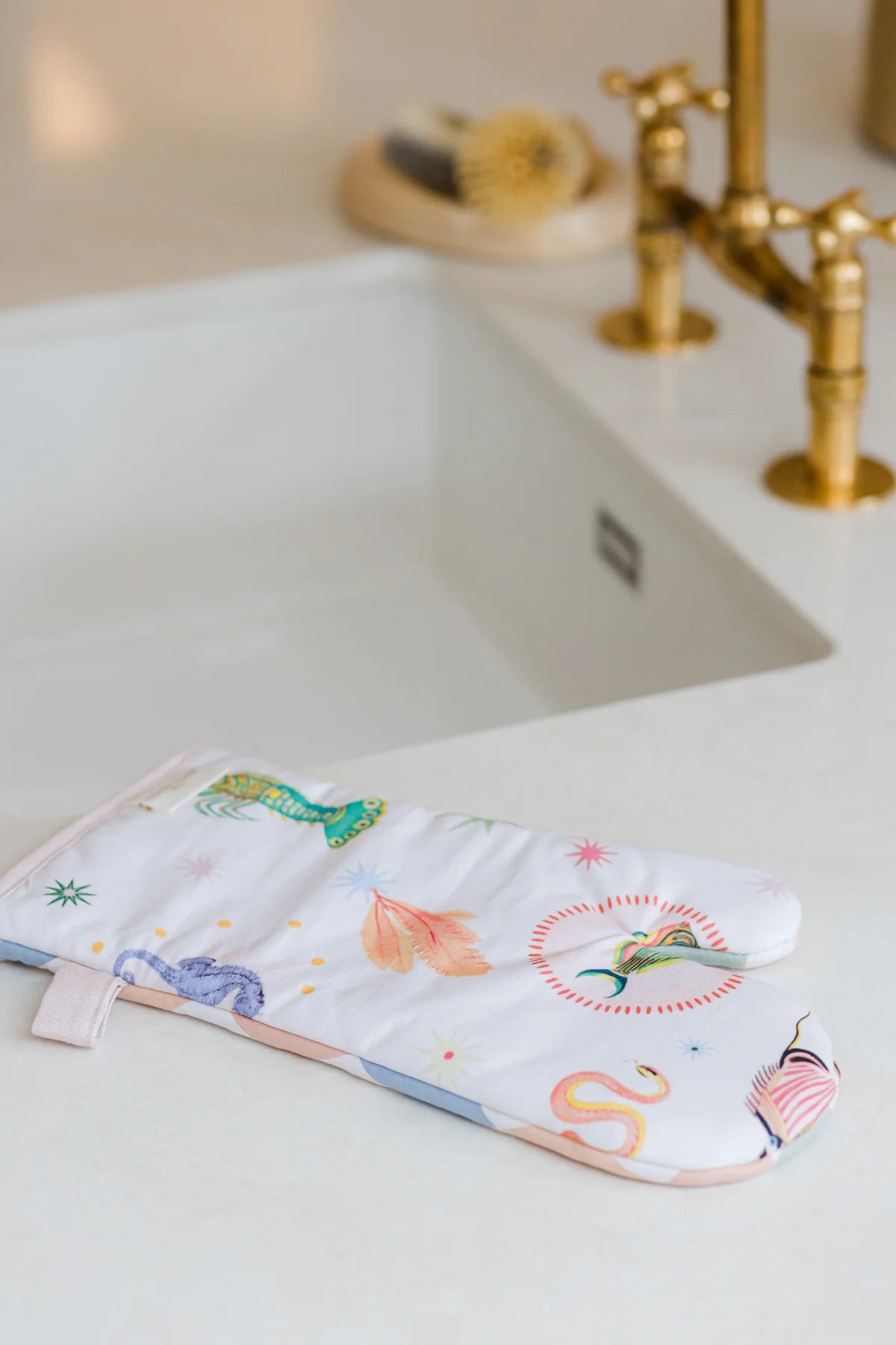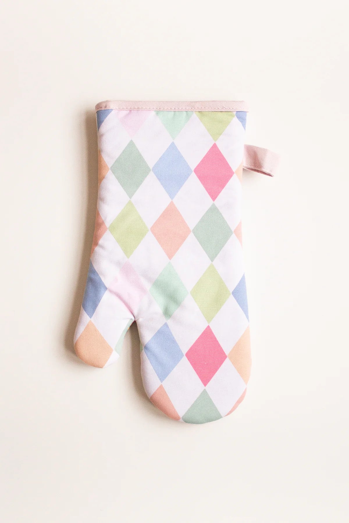 Add some charm to your kitchen with this harlequin reversible oven glove! They're thickly quilted to protect your hands in style with designs on both sides. Match with other kitchen accessories for a stylish finished look. Matching apron, tea towels and double oven glove available!