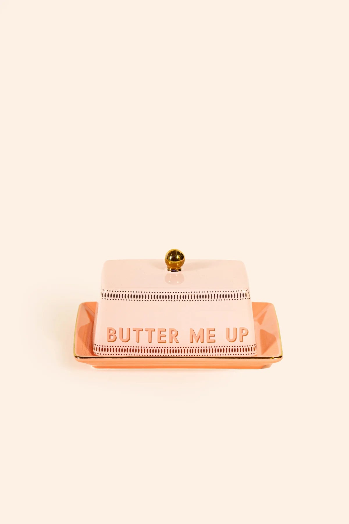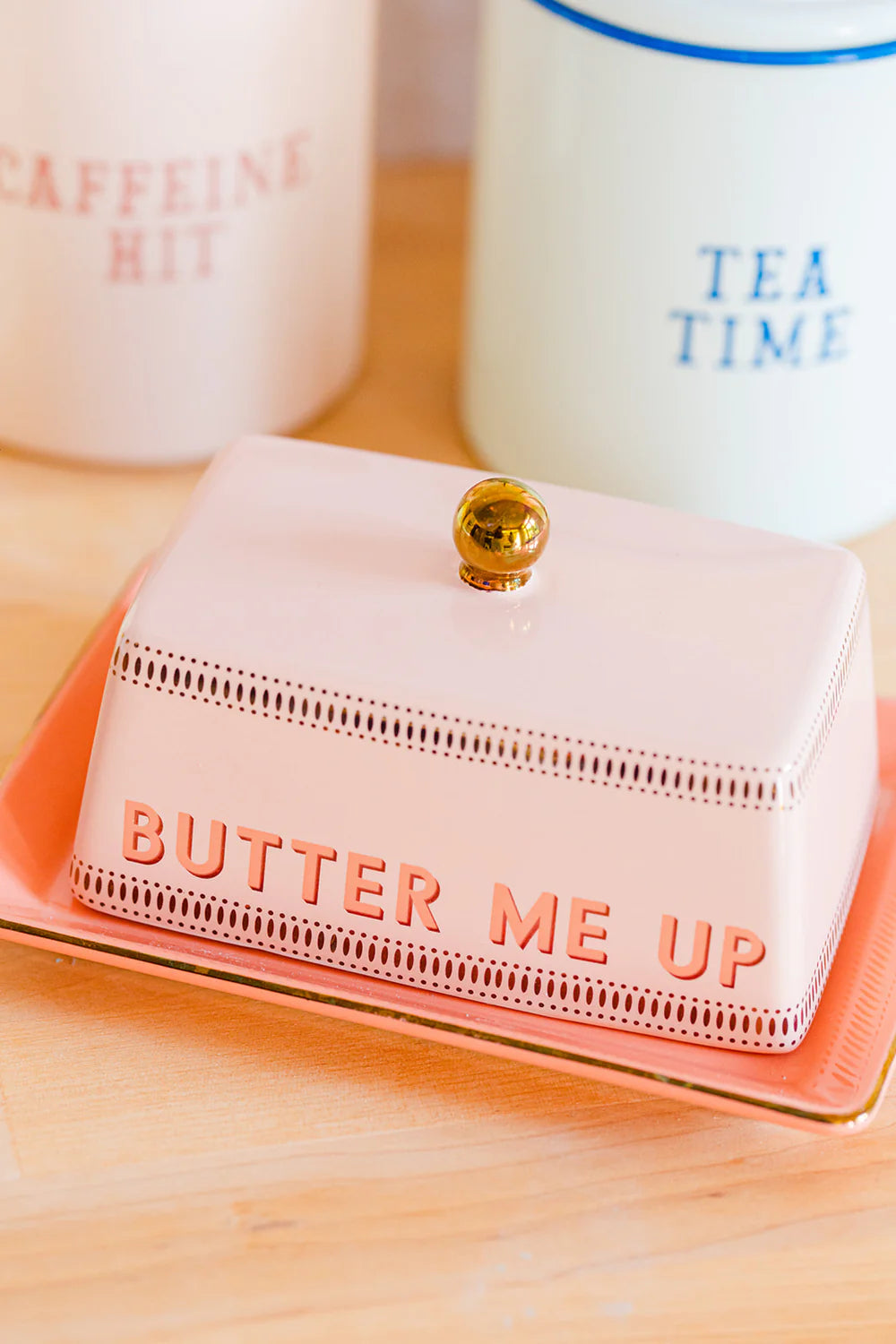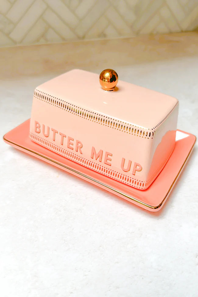 Break out of the ordinary with this unique Yvonne Ellen Butter Dish! Add a vibrant pop of pizzazz to your countertop with its playful pastel hue and glimmer of gold detail. It's the perfect way to bring some quirkiness to your kitchen!!!!