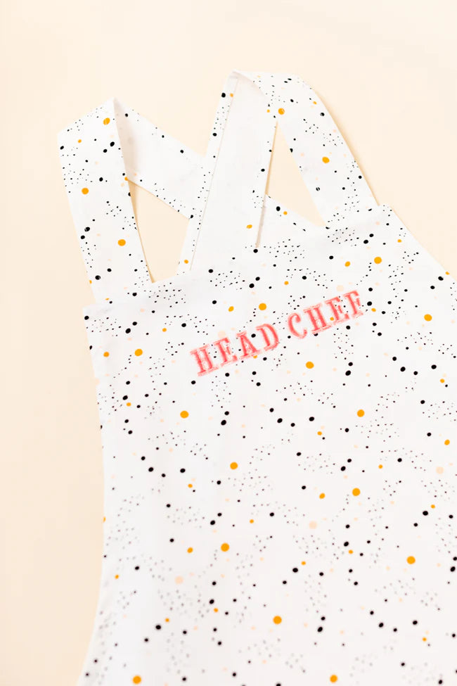 Be the head chef in your own kitchen! Wether you're a baker, cooking a roast or hosting a summer BBQ, this printed apron makes the perfect gift for any culinary aficionado.