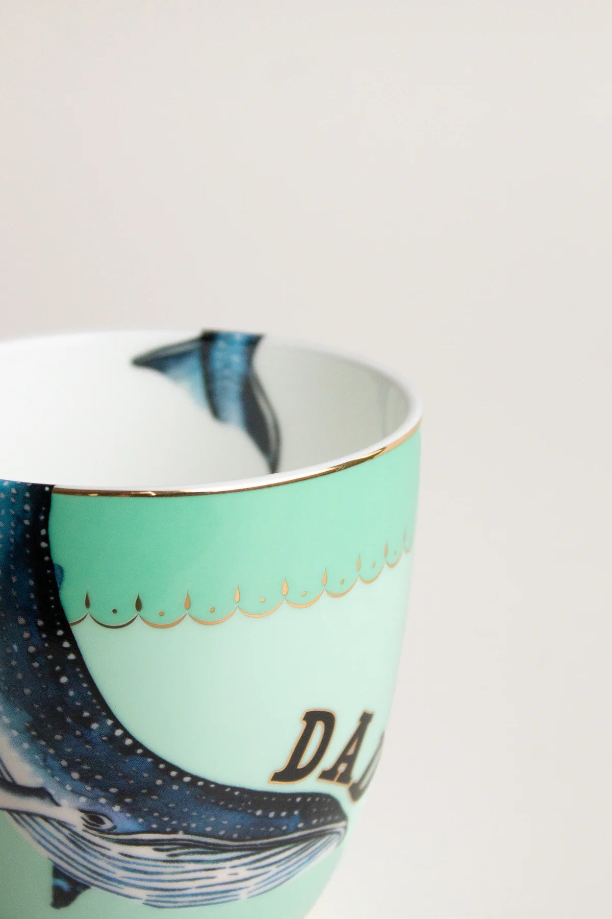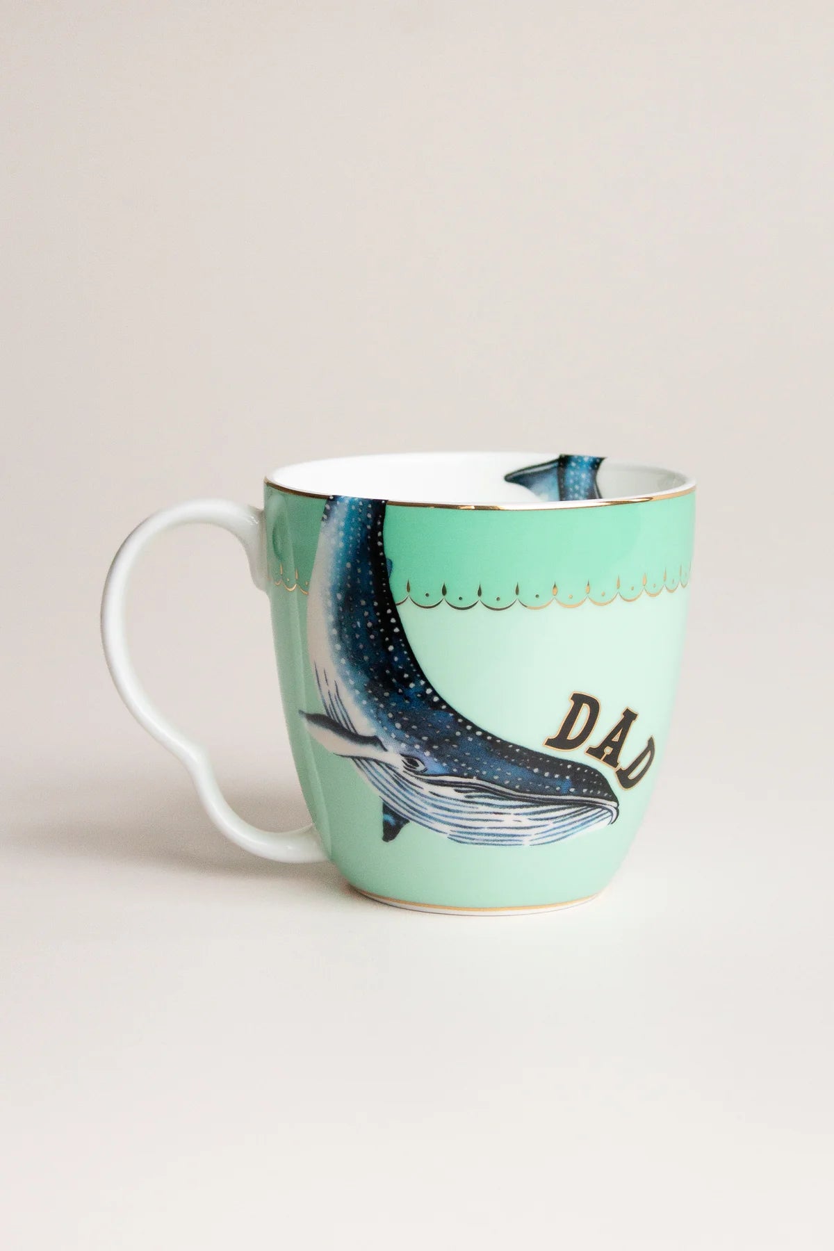 This mug is an ideal gift for birthday's, Christmas or fathers day, a great way to celebrate your lovely dad. This large green mug has a gold gilded pattern for extra elegance! Our charming whale adorns the sides (with a hidden tail on the inside) of the mug with a DAD slogan.