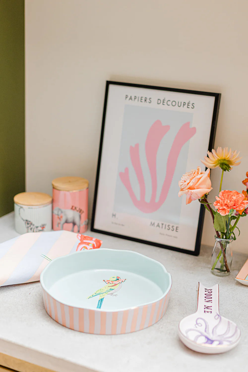 Yvonne Ellen Parakeet Large Round Dish/Roaster