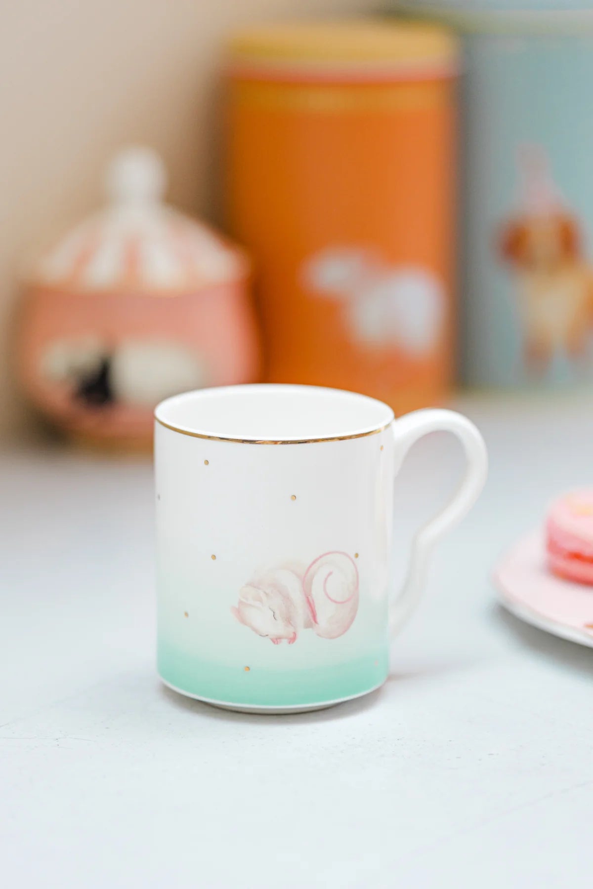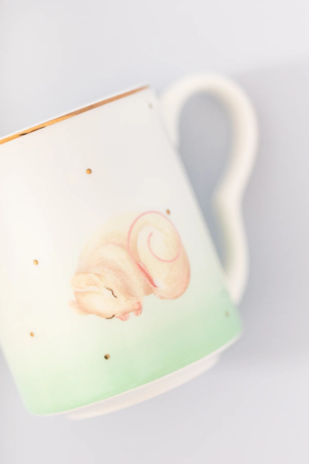 This truly vintage inspired design is adorned with a little mousey on green ombre mug. Gold trimming together with a delightfully fashioned ridge handle make this a pleasure to look at and to use.