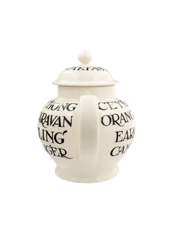 The perfect finishing touch to a breakfast table. A Teapot featuring the signature Black Toast wording. Designed for everyday tea drinking and coordinated table settings, pairs nicely with the Black Toast 1/2 Pint Mugs.