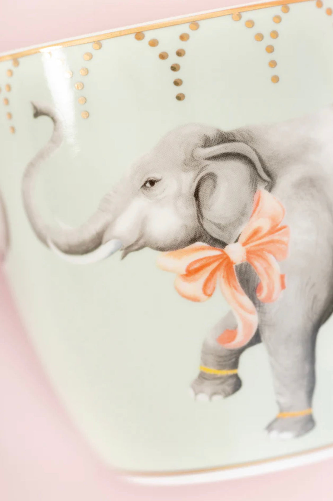 This mug is an ideal gift for birthday's, Christmas or just a way to celebrate your loved ones. This large mug has a pastel mint background, a gold rim and spots for extra elegance! The cheeky elephant with a pink bow adorns the sides of the mug and there's a hidden slogan inside! The perfect addition to your personal mug collection.